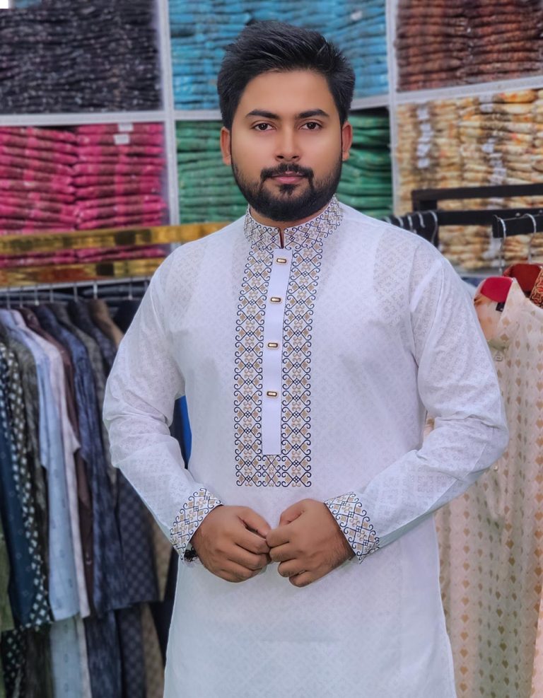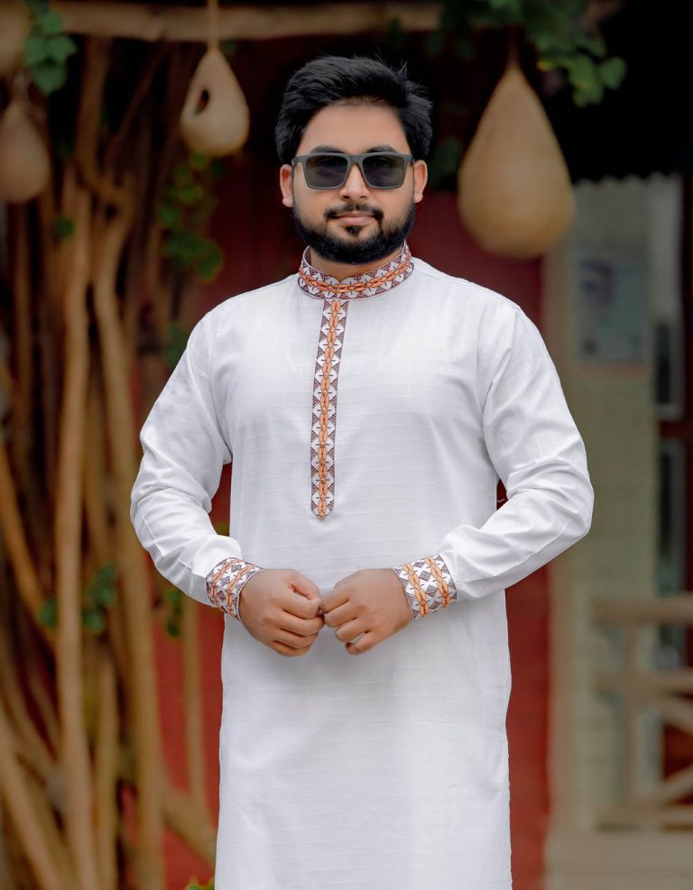 সাদা কালার এম্ব্রয়ডারী পাঞ্জাবী। কোড: ৩৭৫