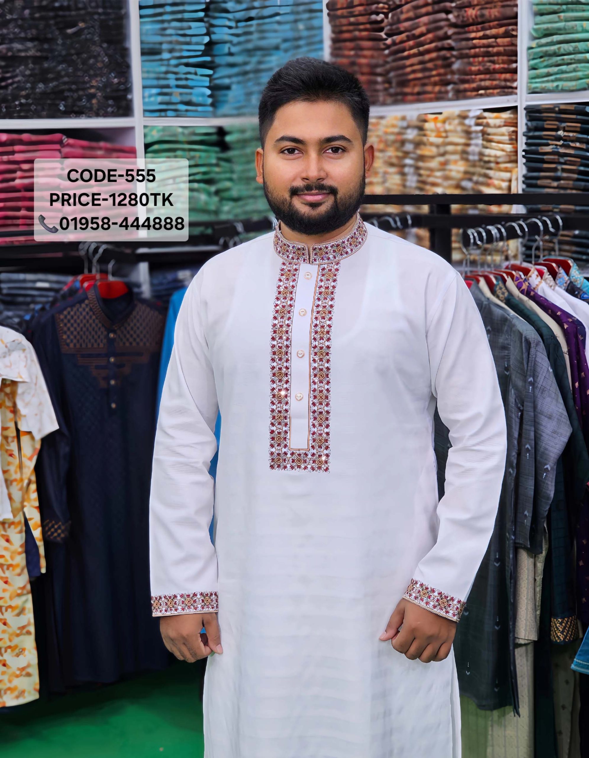 সাদা এম্ব্রয়ডারী পাঞ্জাবী। কোড: ৫৫২